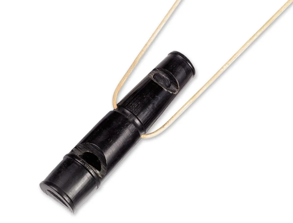 Fluier din corn de bivol cu două tonuri, având o lungime de 9 cm, ideal pentru dresajul câinilor. Designul său compact îl face ușor de folosit și transportat.