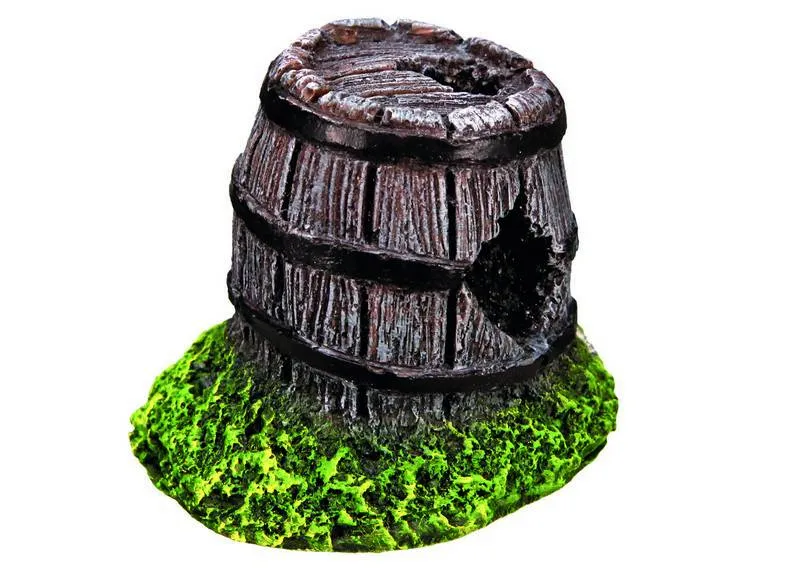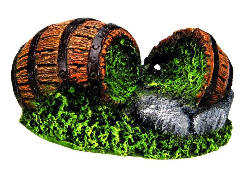 Ornament pentru acvariu BARREL, asortate, cu dimensiuni între 4,5 și 7 cm, se prezintă în set de 12 bucăți. Aceste butoaie adaugă un aspect jucăuș și oferă peștilor locuri de explorat și ascuns.