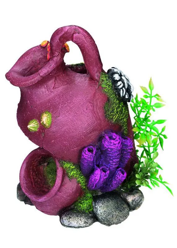 Cu dimensiuni de L11 x W11 x H14,7 cm, ornamentul 'JAR' - cu plante este ideal pentru a oferi un refugiu peștilor. Este realizat din materiale sigure pentru apă.