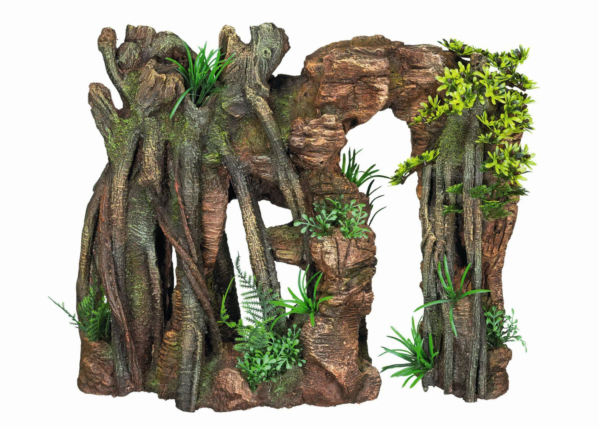 Ornament pentru acvariu | ROCK WITH JUNGLE cu plante | L38,5 X W16,5 CM