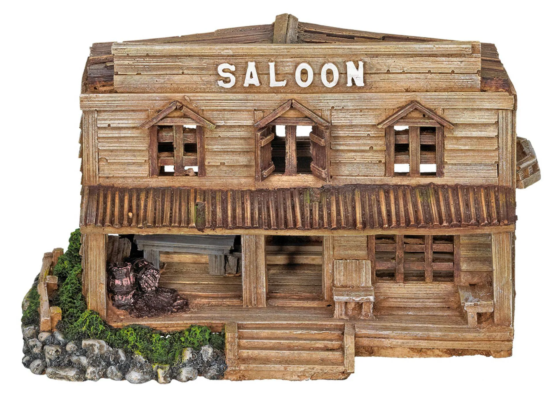 Ornament 'SALOON', cu dimensiunile L23,0 x W11,0 x H14,0 CM, perfect pentru a crea un decor tematic în acvariu. Fabricat din material durabil, aduce un strop de distracție în habitatul acvatic.