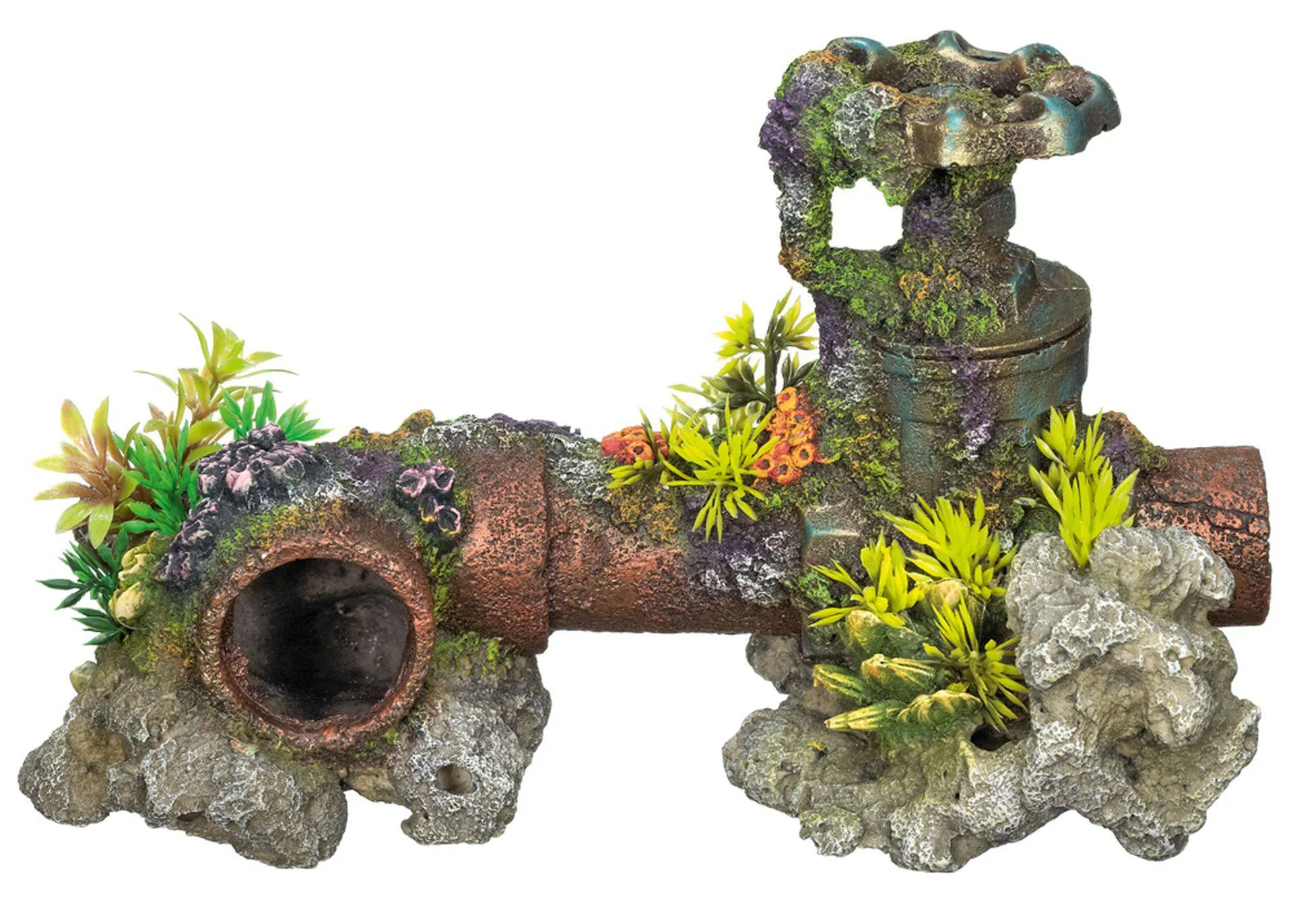 Ornament pentru acvariu | 'WATER-PIPE' cu plante | L27,0 X W13,5 X H16