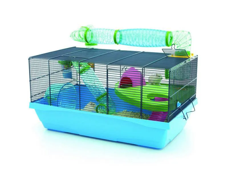 Cușca 'MICKEY LARGE' include 2 bucăți cu dimensiuni de 59 x 38 x 30 cm, fiind perfectă pentru rozătoare de dimensiuni medii. Designul său permite acces ușor și asigură confort pentru animaluțele tale.