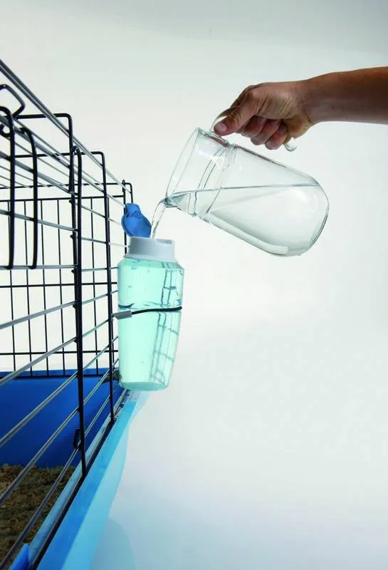 Adaptoare 'SOURCE' de 300 ML, special concepută pentru rozătoare, asigurând o sursă constantă de apă. Sistemul cu bile previne scurgerile, iar suportul de prindere facilitează montarea în cușcă.