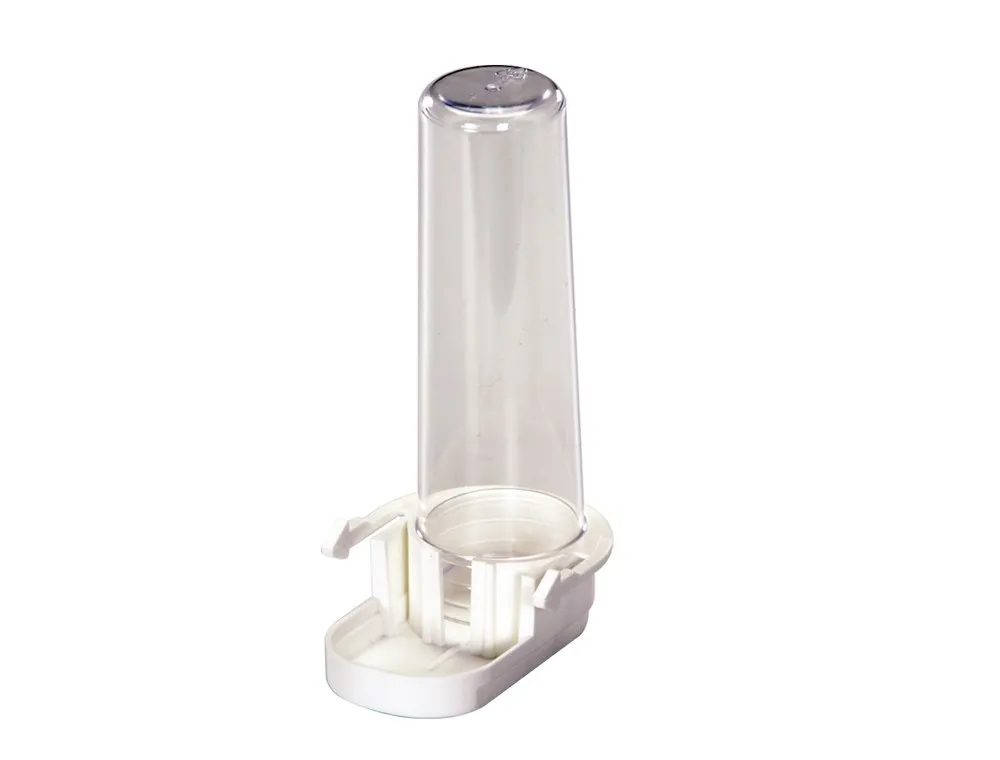 Adapatoare pentru păsări, ideală pentru apă și hrană, cu prindere orizontală pe grilaj, alb, ușor de utilizat și întreținut.