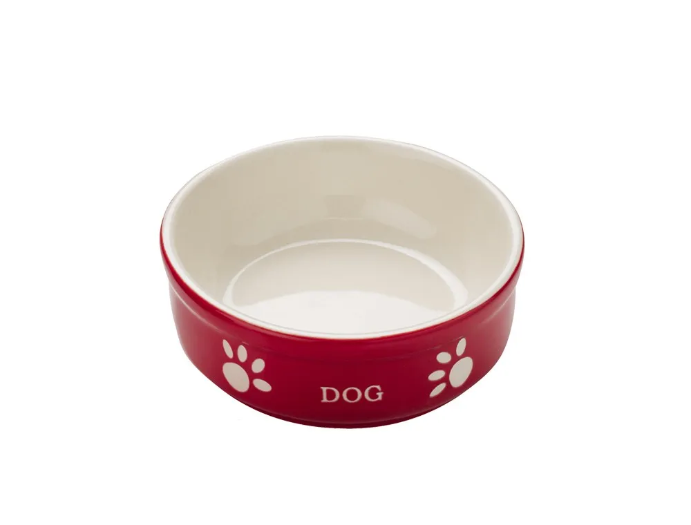 Castron din ceramică 'DOG' | roșu/bej | 13,5 X 13,5 X 5 CM