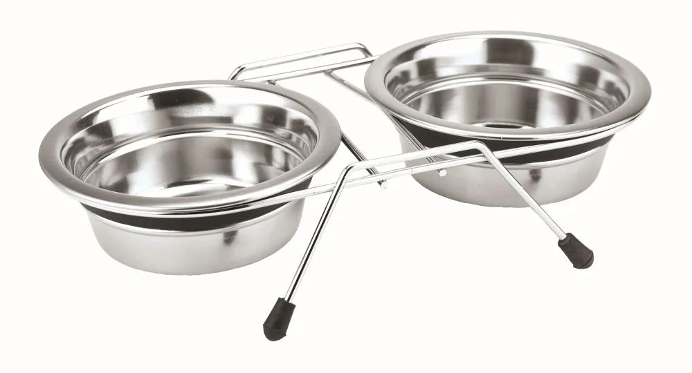 Castron dublu din inox 'SILENT DINER', care include două castroane cu o capacitate totală de 0,20 L. Fabricat din inox, este ușor de curățat și rezistent la uzură.