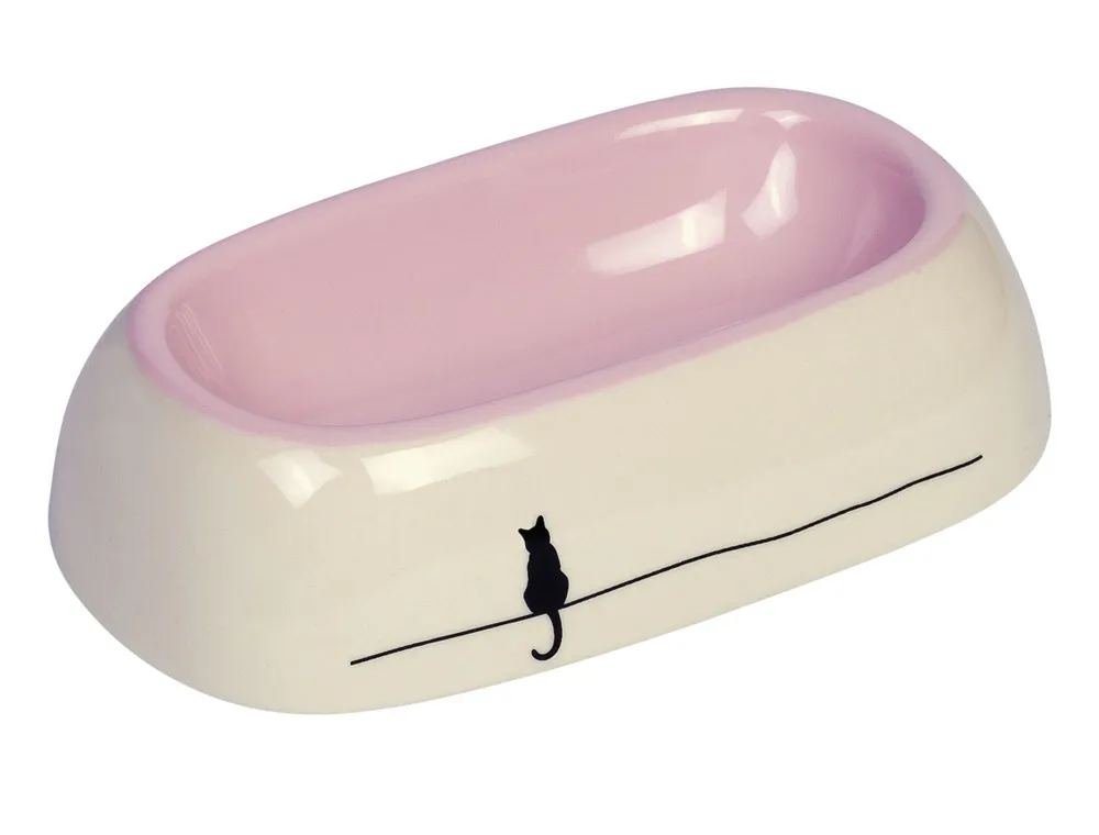 Castron din ceramică pentru pisici | 'Tabby' | pink/crem | 18x 10,5 x 4,5 cm