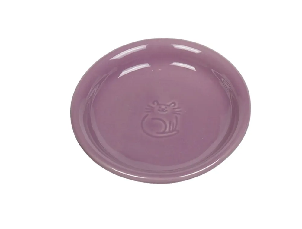 Castron din ceramică pentru lapte, de culoare mov, cu diametru de 14 cm și adâncime de 2 cm. Ideal pentru a oferi pisicii tale porții de lapte proaspăt.