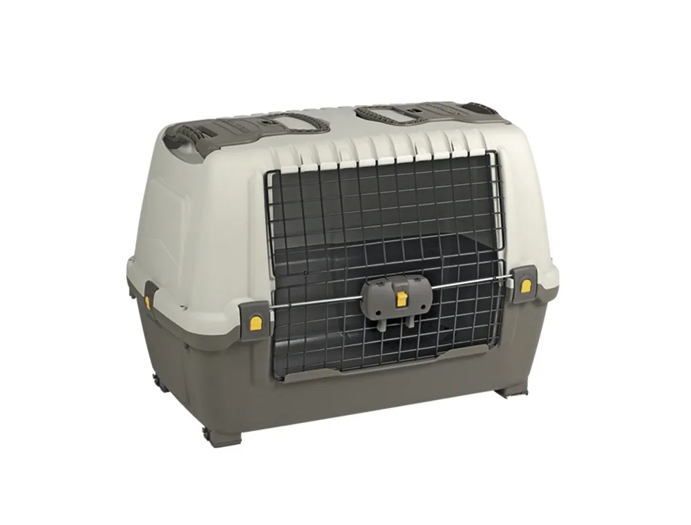 Cusca pentru masina 'SKUDO CAR 90' de culoare gri, cu dimensiunile de 89 x 51 x 60 cm, ofera un spatiu sigur si confortabil pentru caini, fiind usor de utilizat in vehicule.