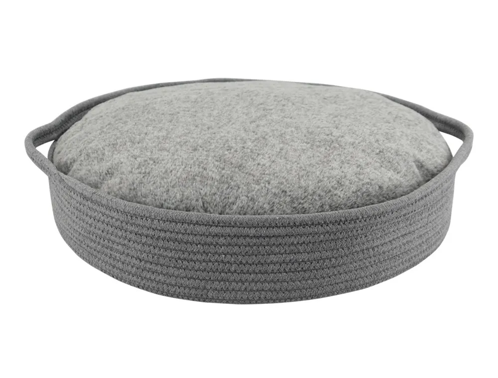 Patutul/Cos pentru câini 'NOLA' în gri, cu dimensiunile de Ø 45 x 10 cm, este ideal pentru câini de talie mică. Pernă din plus asigură un loc moale și confortabil pentru odihnă.