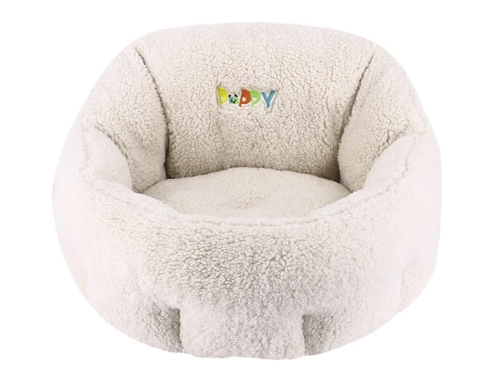Patul oval Comfort 'PUPPY' măsoară 50 x 45 x 32 cm și vine într-o nuanță de fildes. Este ideal pentru câini mici, oferindu-le un spațiu cozy pentru odihnă.