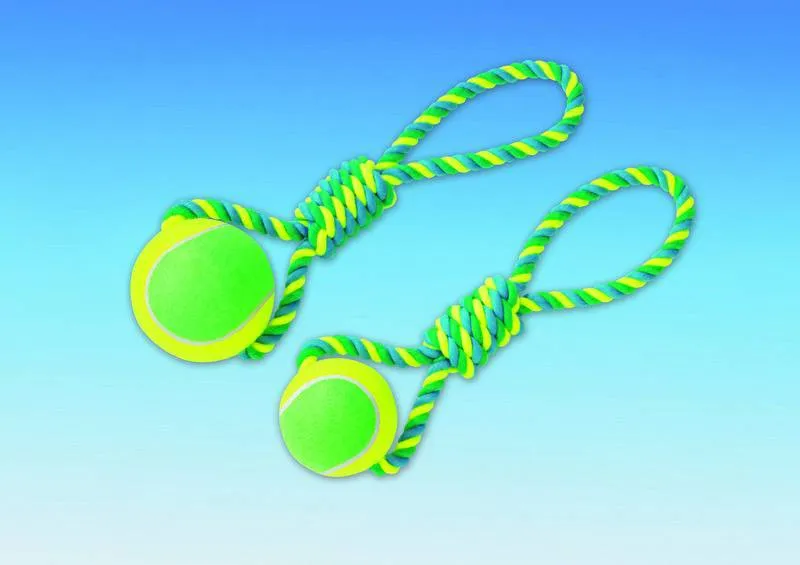 Sârma cu minge de tenis XXL, având o lungime de 48 cm și o minge cu diametru de 10 cm, este perfectă pentru jocurile de aruncare și prindere. Jucăria este realizată din materiale durabile, ideale pentru câinii jucăuși.