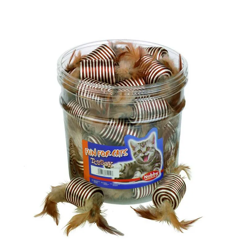 Cutie cu jucării pentru pisici, cilindru maro/bej tub 36 PCS., 5 CM