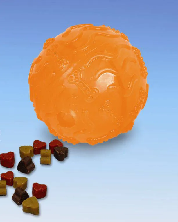 Minge de tratament TPR, portocalie, cu un diametru de 10 cm, este ideală pentru jocurile interactive cu câinii. Fabricată din TPR, aceasta combină distracția cu recompensele.