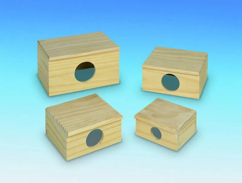 Casa din lemn pentru rozătoare 'Flada', cu dimensiuni de 12,8 x 12 x 6,3 cm, este perfectă pentru a oferi un adăpost călduros. Construcția din lemn garantează un mediu sigur.