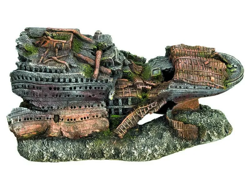 Ornamentul SHIPWRECK 2 STERN are dimensiuni de L32 x W20 x H14 cm și este fabricat dintr-un material plastic robust. Aspectul său de epavă adaugă caracter acvariului și creează oportunități de ascunzătoare pentru pești.