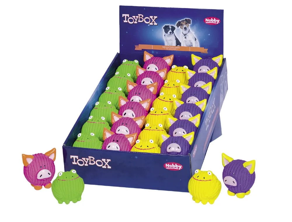 Mingi din latex pentru câini, cu interior din spumă, ambalate în display de 24 bucăți și cu dimensiuni de 6-7 cm. O alegere excelentă pentru jocuri active.