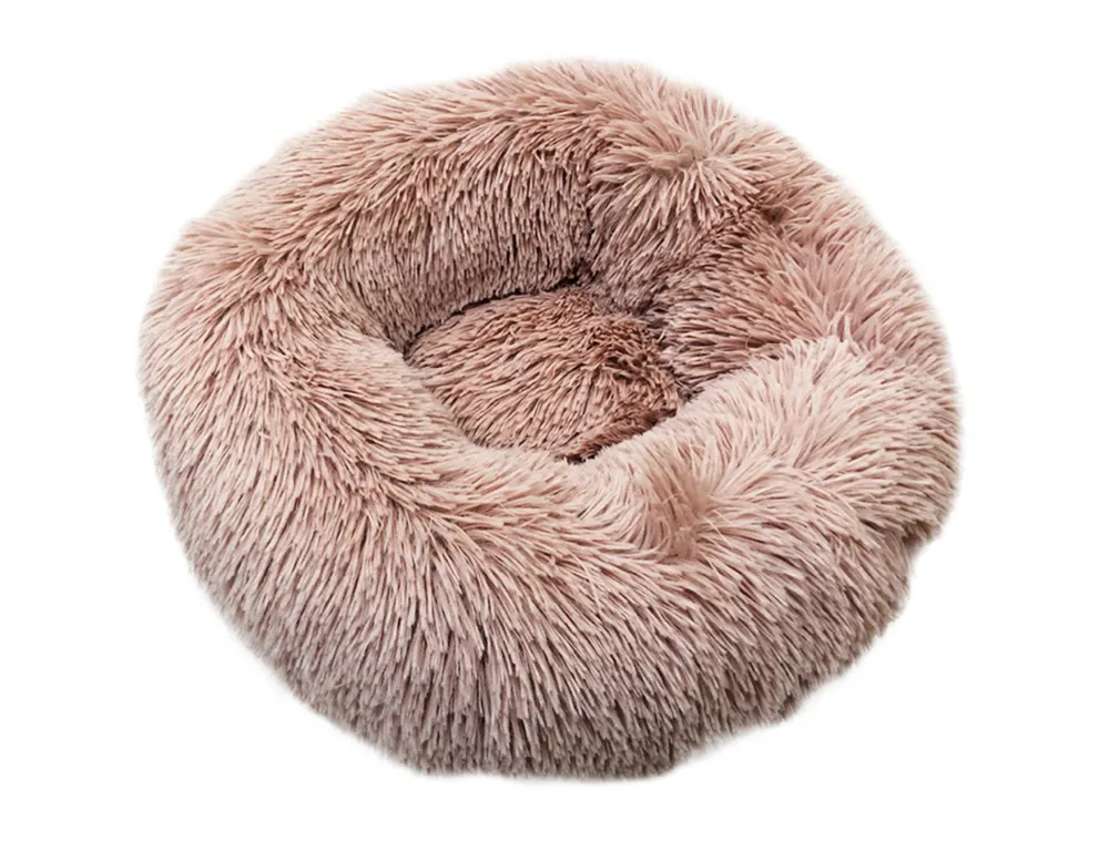 Donutul Classic 'ESLA' în nuanța dusty pink, cu dimensiuni de Ø 70 x 26 cm, este ideal pentru câinii care adoră să se cuibărească. Designul elegant îl face potrivit pentru orice cameră.