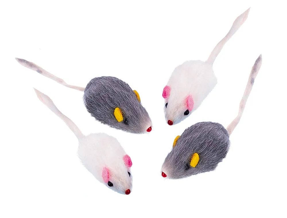 Șoarece PUFOASĂ CU PĂR SCURT, 5 CM; 4 PCS pentru pisici