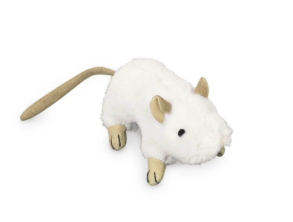 Șoarecele din pluș alb, de 10 cm, este o jucărie mică și atrăgătoare pentru pisici, perfectă pentru sesiuni de joacă active. Materialul moale asigură distracție fără riscuri.