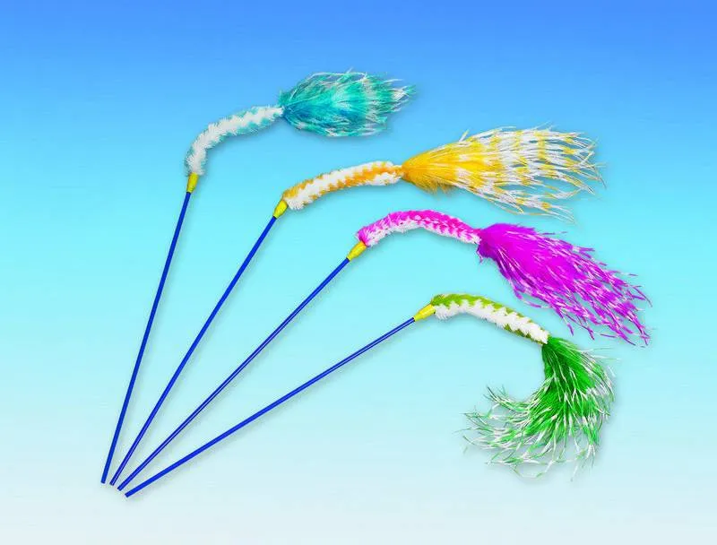 Băț cu jucărie, cu o lungime de 45 cm și o jucărie de 41 cm, este ideal pentru pisici. Această combinație atrăgătoare va stimula curiozitatea și instinctul de vânătoare.