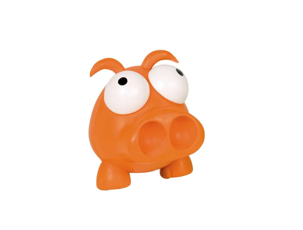 Porcușorul din cauciuc, cu un diametru de 6 cm și culoare portocalie, este un accesoriu jucăuș pentru câini. Ideal pentru a fi mușcat și purtat, ajută la menținerea sănătății dentare prin masajul gingiilor.
