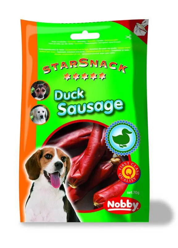 Cârnațioarele de rață Starsnack au o greutate de 70 g și sunt o recompensă delicioasă pentru câini, oferind un gust intens și o textură plăcută. Acestea sunt ideale pentru răsfățul patrupedului tău sau ca recompensă în timpul antrenamentelor.