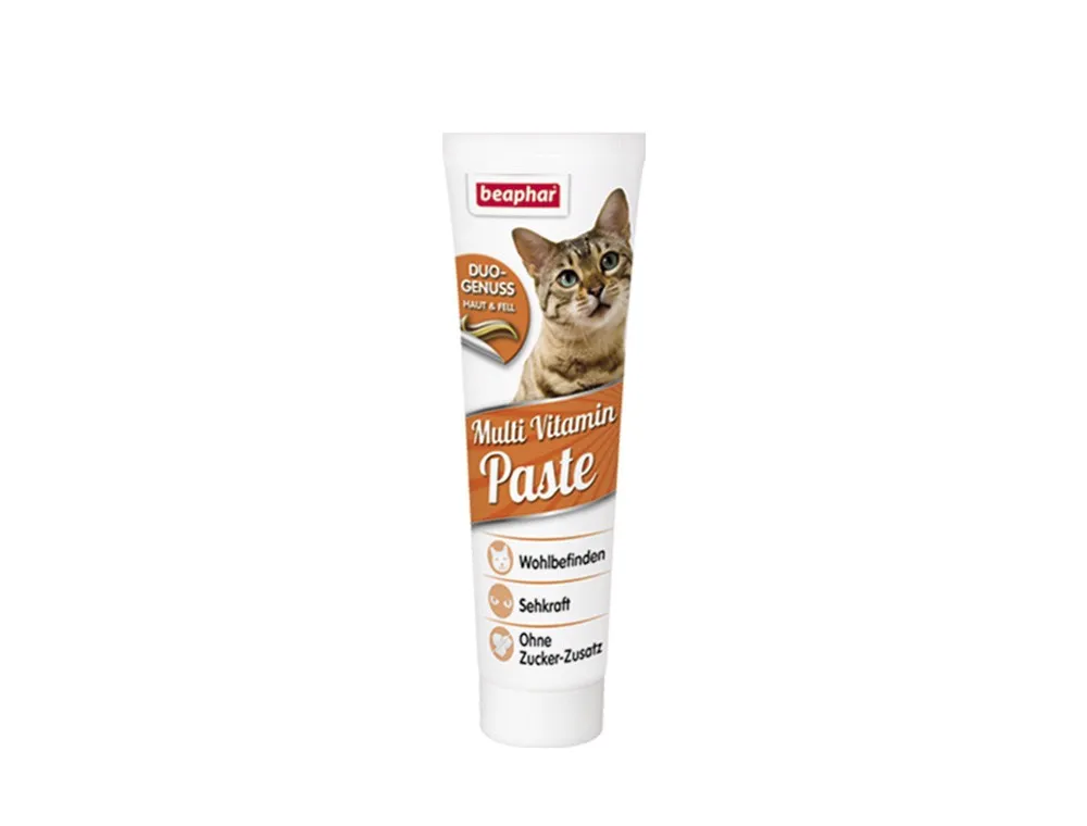 Pasta Multi - Vitamine pentru pisici | Beaphar | 100 G este un supliment nutritiv care ofera vitamine esentiale pentru pisici. Ajuta la intarirea sistemului imunitar si la mentinerea unui blanita sanatoasa.