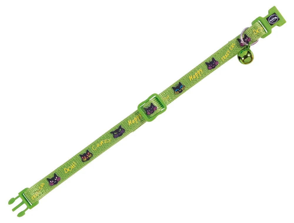 Zgarda pentru pisici 'Happy Cat Green' aduce o notă de veselie prin nuanța sa vibrantă. Fabricată dintr-un material de calitate, asigură confortul necesar.